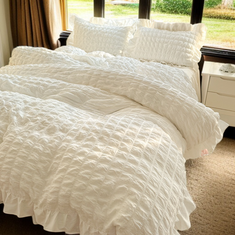 シアサッカージャカードベッドスカート寝具セット(ウォッシュドコットン)