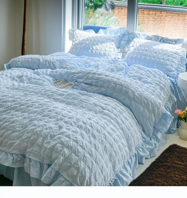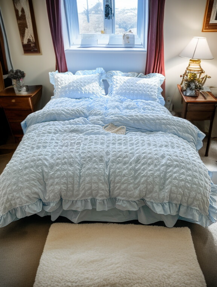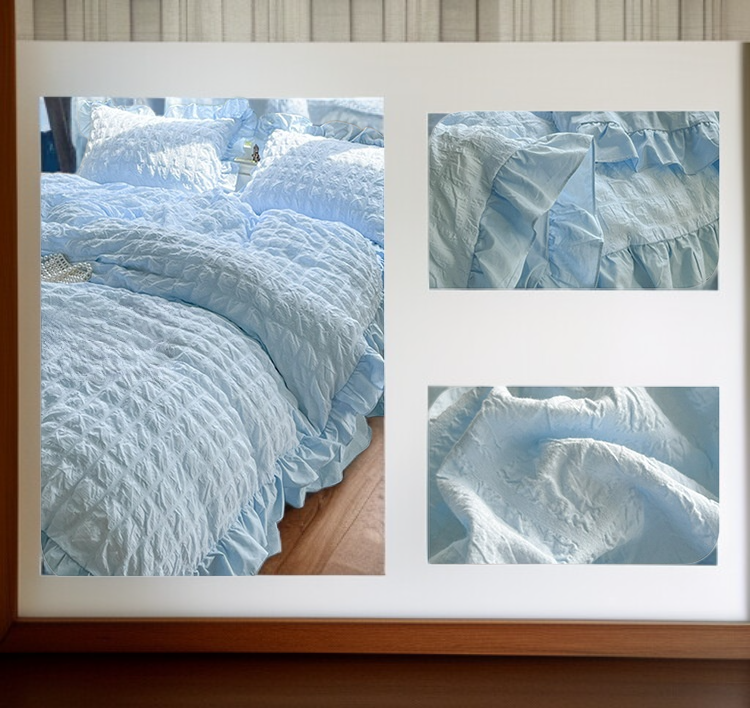 シアサッカージャカードベッドスカート寝具セット(ウォッシュドコットン)