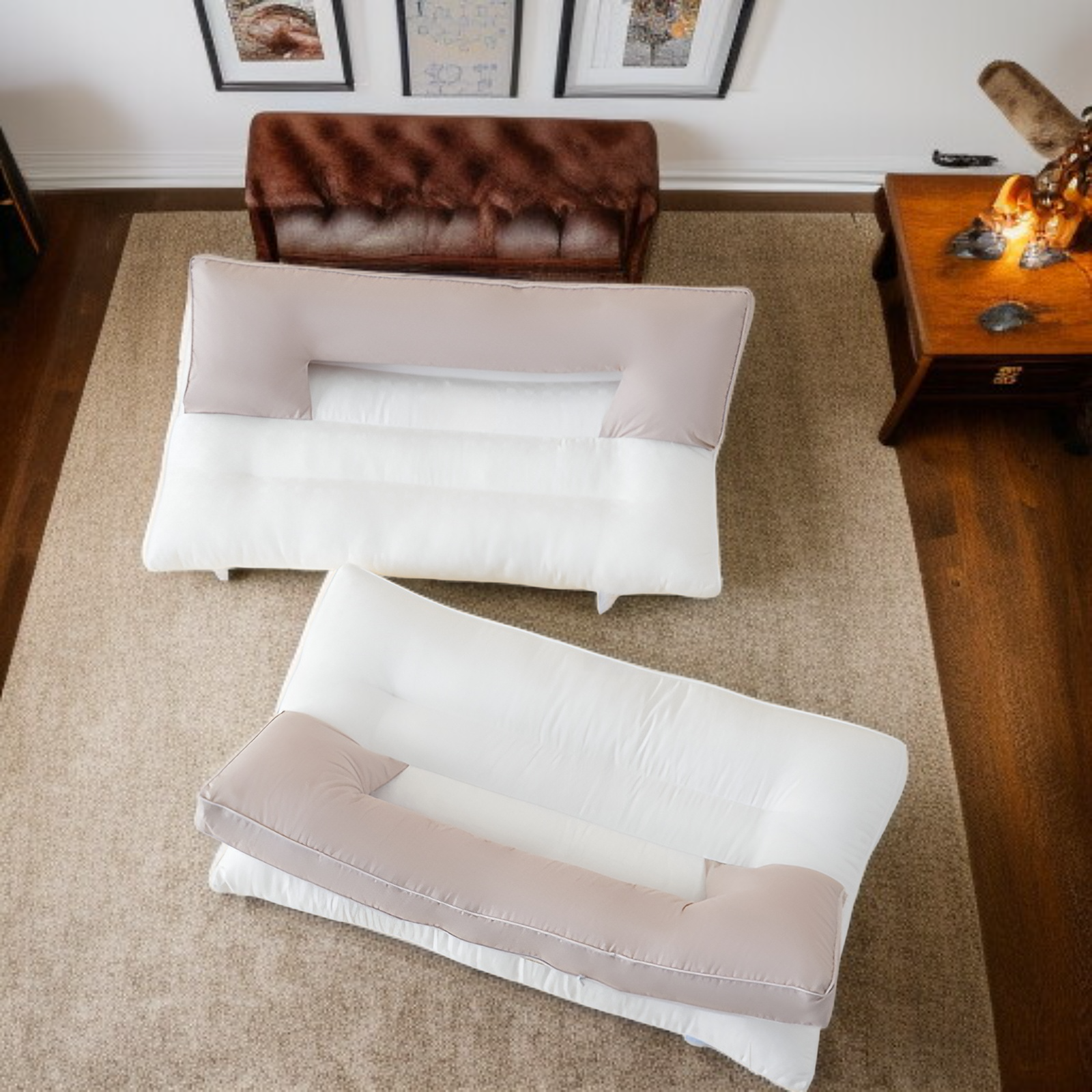 2層式折りたたみ式睡眠補助牽引枕、高さ調節可能なPEホースサポート付き